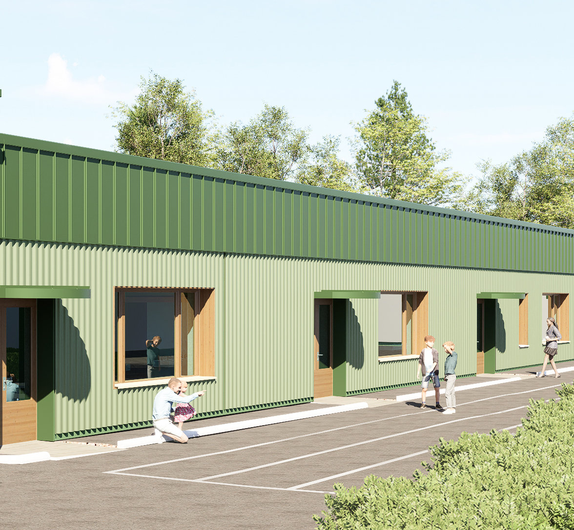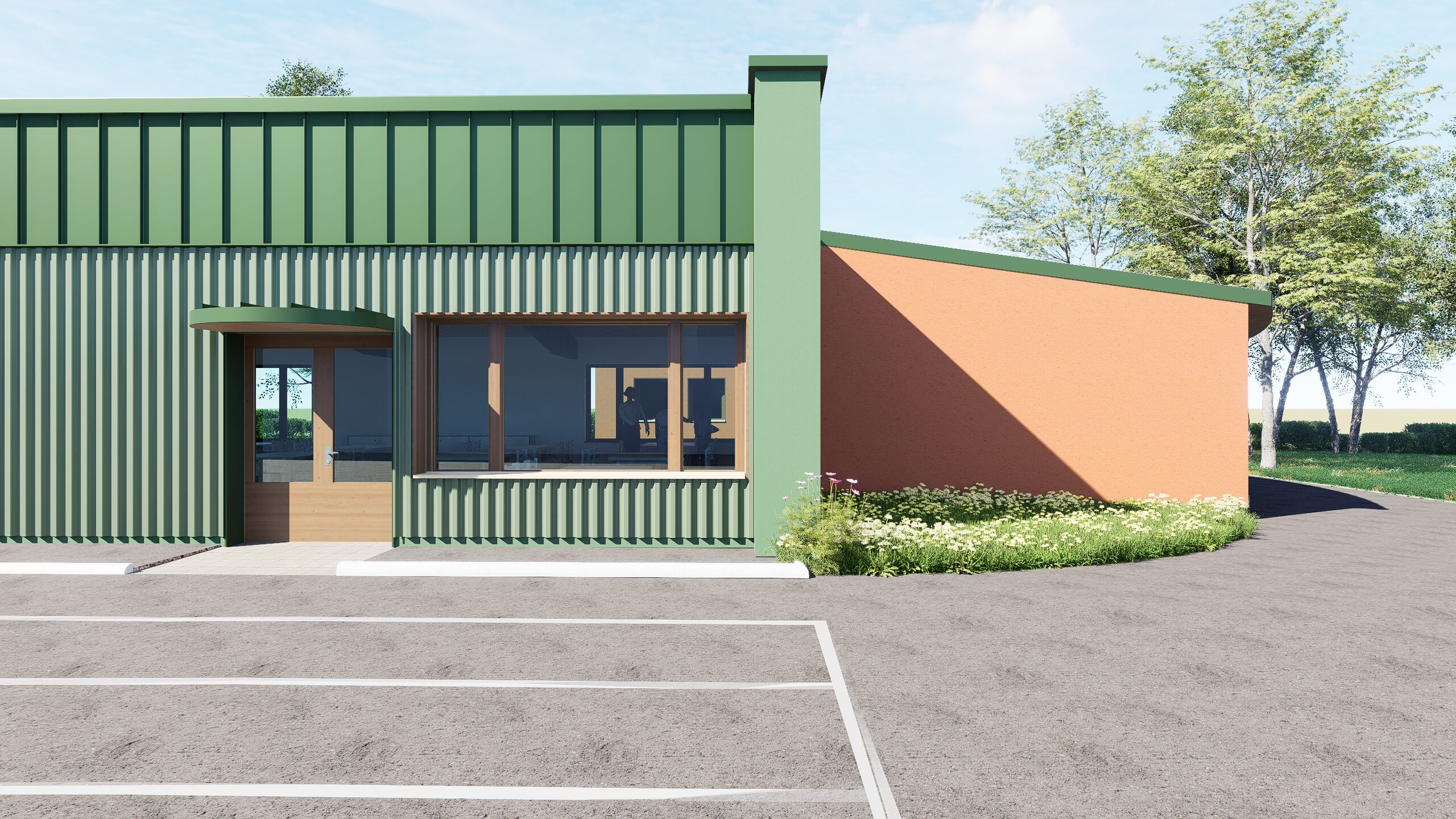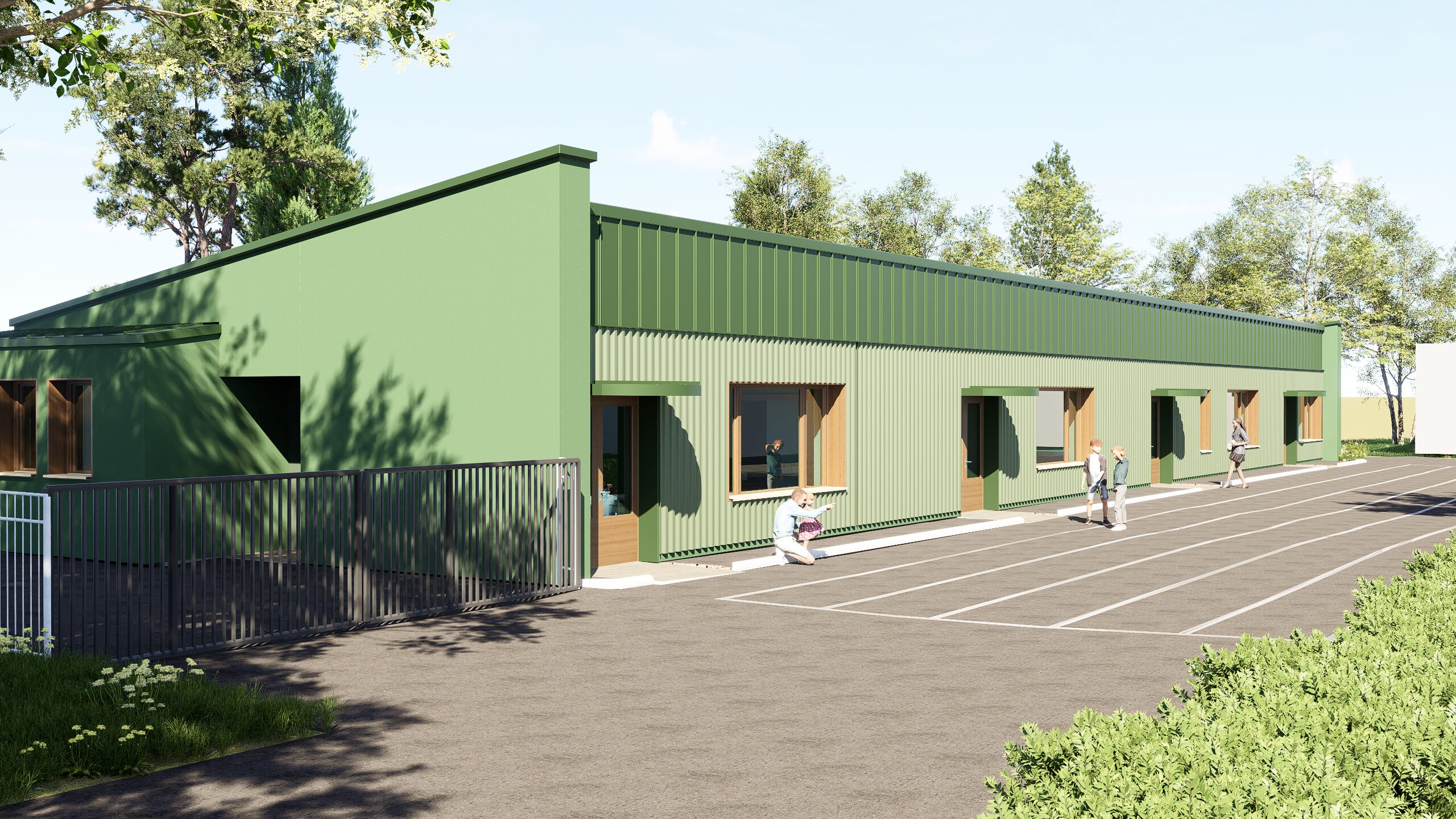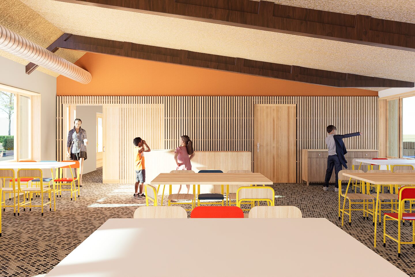 Ce projet de rénovation thermique prend place au sein du groupe scolaire des Aiguisons. Le bâtiment accueillant la restauration scolaire ainsi que l’accueil périscolaire est caduque et nécessite une extension, une mise au normes, notamment de la cuisine, ainsi qu’une rénovation thermique. Le complexe formant l’enveloppe du bâtiment est revu, un système de ventilation et de chauffage performant est proposé, des aménagements intérieurs sont proposés afin de retrouver des salles de traversantes, lumineuses et offrant la possibilité d’une ventilation naturelle transversale. La toiture est entièrement remplacée, les façades sont isolées par l’extérieur en laine de bois et revêtu d’un bardage bois peint permettant de renouveler l’image du bâtiment. Les matériaux sont biosourcé, les systèmes assez efficients pour répondre RE2020 objectif 2026 et au référentiel Effilogis. La reconfiguration des espaces intérieurs permet d’ajouter une salle de restauration, de créer des vestiaires pour le personnel et des espaces d’entrée et d’accueil confortables. La capacité d’accueil est ainsi augmentée pour répondre aux évolutions du groupe scolaire. Les aménagements extérieurs et la désimperméabilisation de la cour sera prévu dans un second temps.
