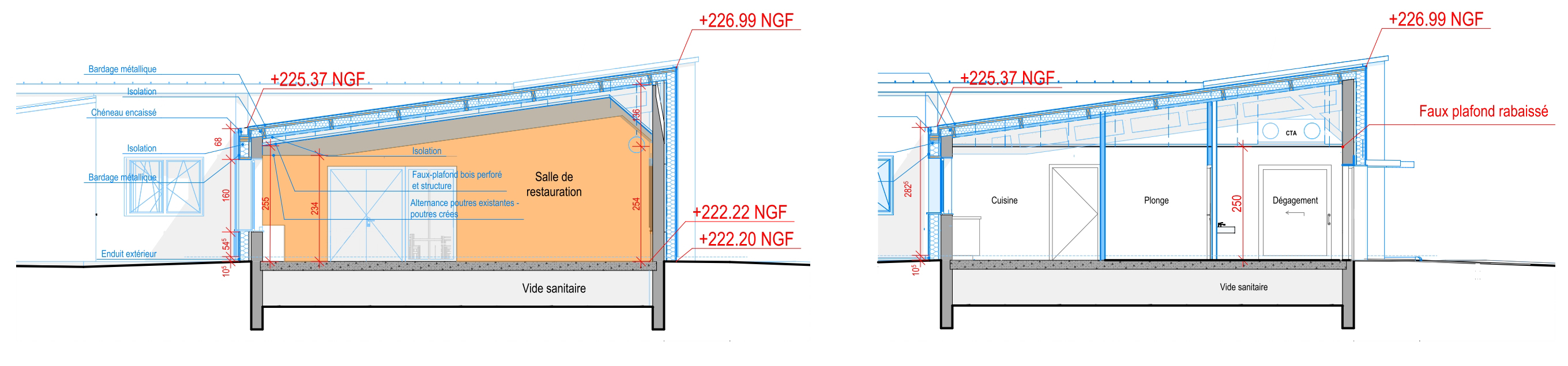 Des aménagements intérieurs et une extension permettant de retrouver des salles traversantes, lumineuses et pouvant être ventilée naturellement. La capacité est augmentée.