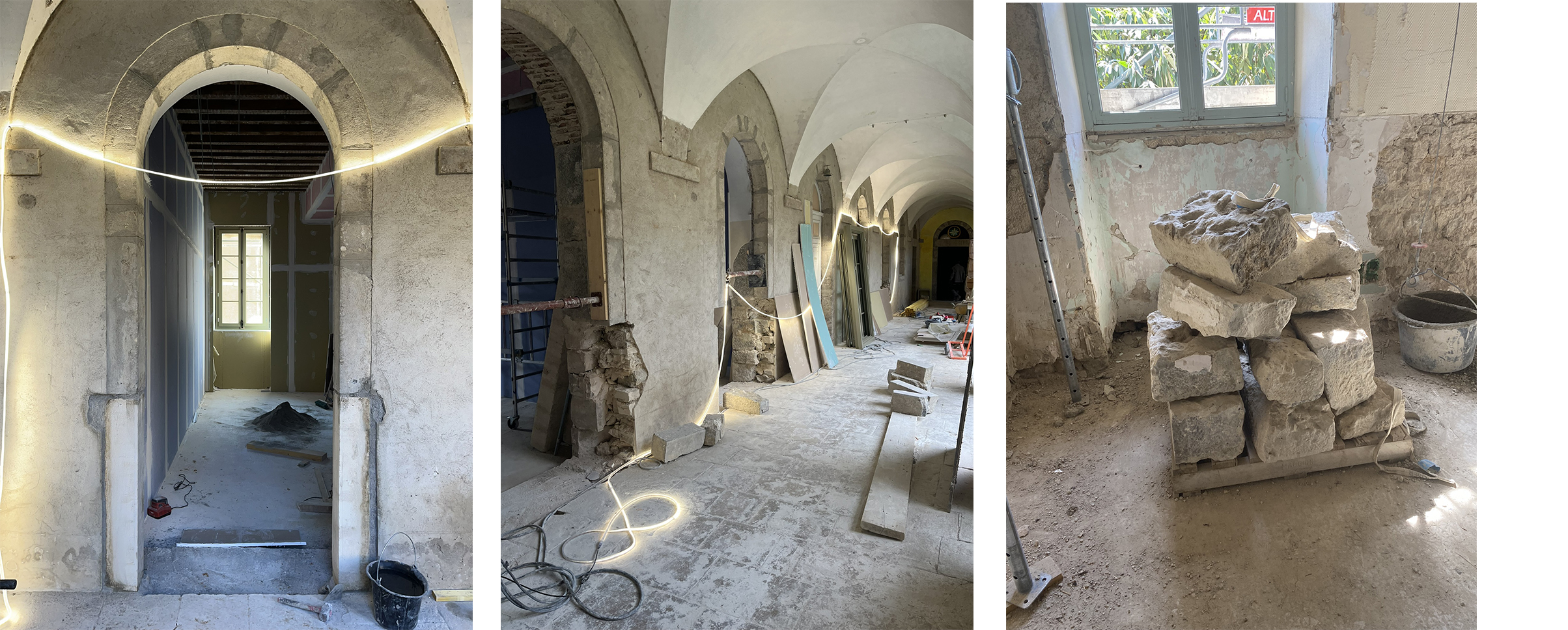 La pierre, intemporelle, et dont l’inertie est précieuse, le bois brut, noble, autant que possible local, et la laine de bois, isolante et biosourcée, sont les matériaux principaux du projet répondant au référentiel Eifilogis. L’existant est mis en valeur et s’ouvrent sur le cloître, les salles deviennent accueillantes, le confort thermique d’été et d’hiver est assurée.
