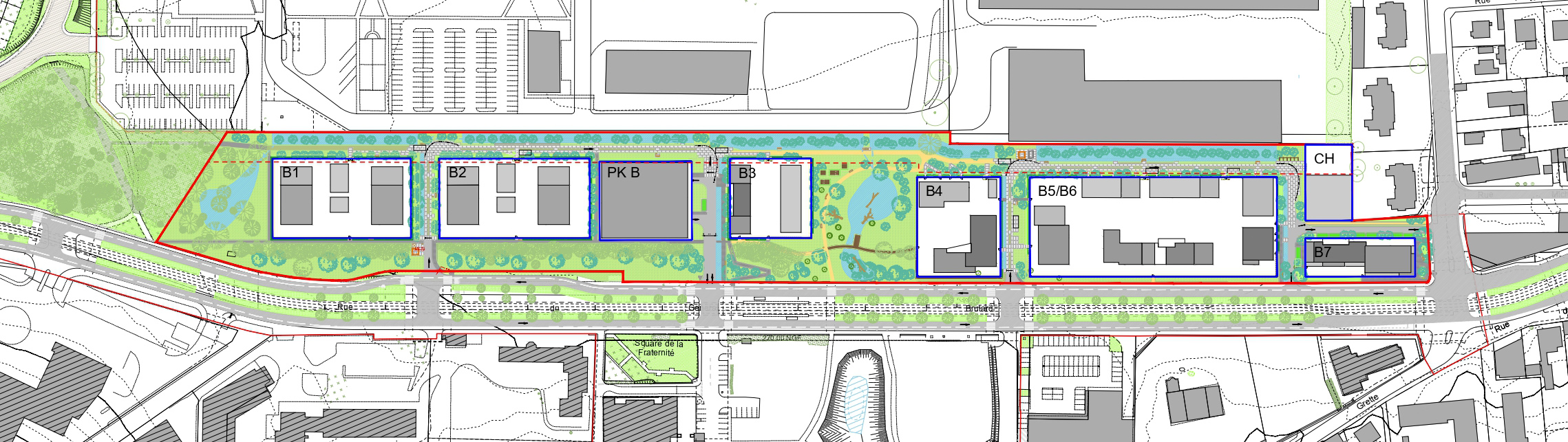 PROGRAMME : Quartier piéton et largement végétalisé, proposant un habitat de qualité. 600 logements, intermédiaires et collectifs, sont prévus.