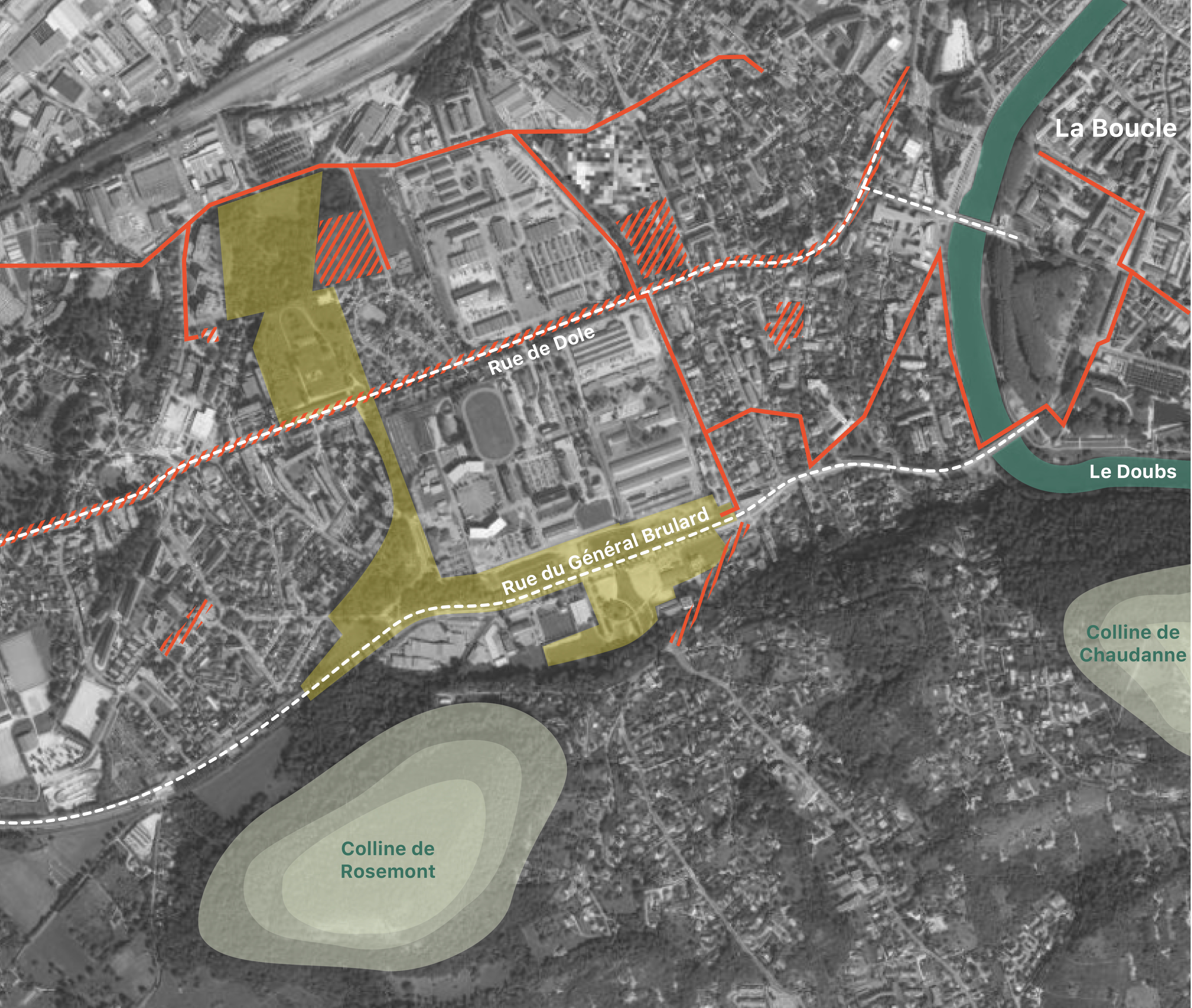 Situation des secteurs Grette et Brulard dans l’agglomération bisontine