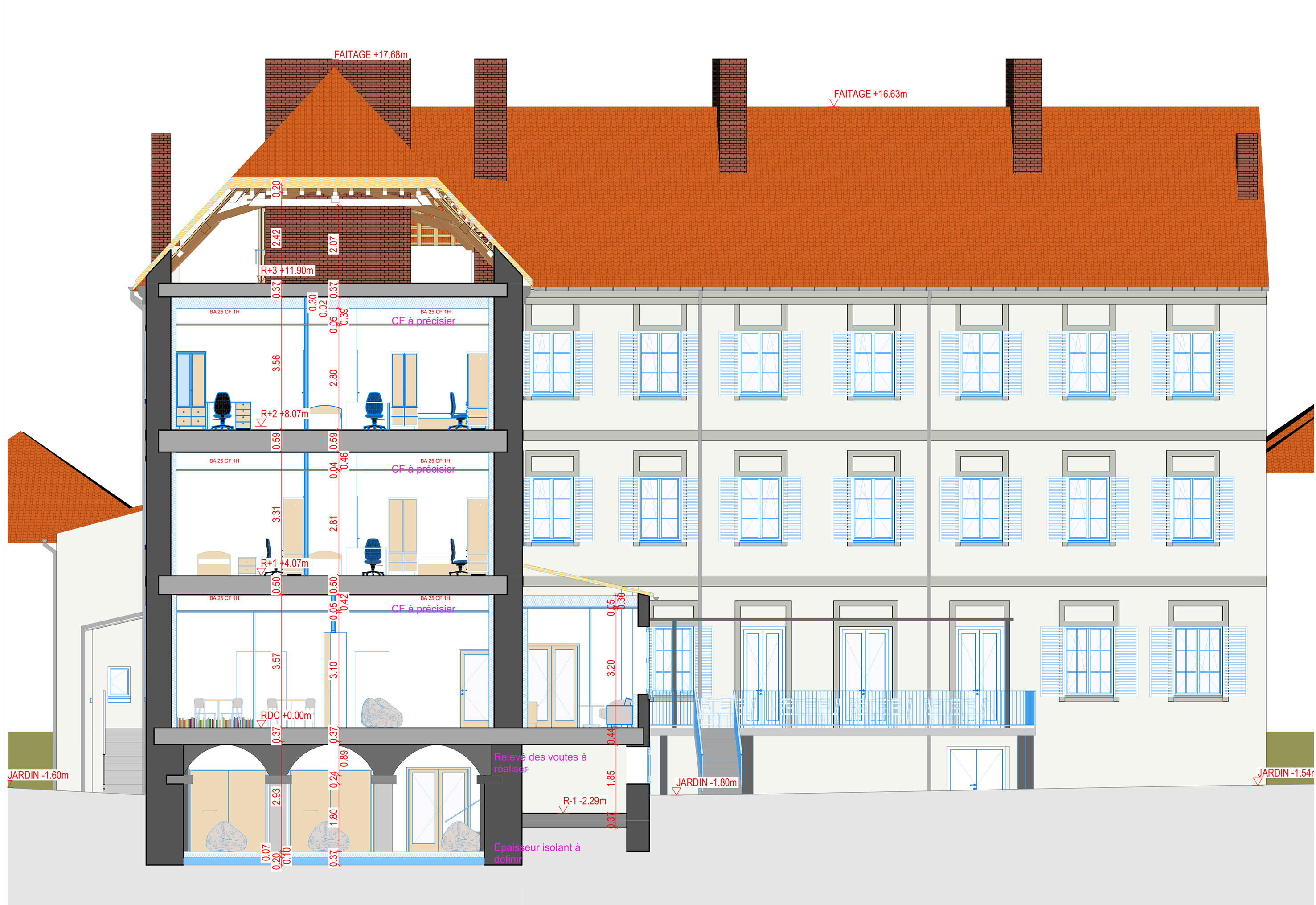 RÉALISATION D’UNE MAISON D’ENFANCE A CARACTERE SOCIAL – MECS, EN RÉHABILITATION LOURDE DE L’ANCIEN COUVENT D’UNE BASILIQUE. ENVIRON 20 ENFANTS PLACÉS DE 7 à 15 ANS SERONT ACCUEILLIS ET OCCUPERONT CE SITE PATRIMONIAL AU COEUR DE GRAY.