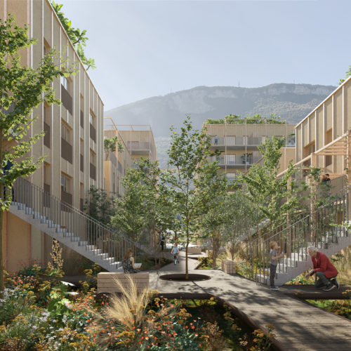 LOT F5A DE LA ZAC PORTES DU VERCORS, UN ENSEMBLE DE LOGEMENTS INTERMEDIAIRES ET COLLECTIFS QUI FAIT LA PART BELLE AUX ESPACES COMMUNS ET A LA CONVIVIALITE MAÎTRISE D’OUVRAGE : ISERE AMENAGEMENT, GRENOBLE...
